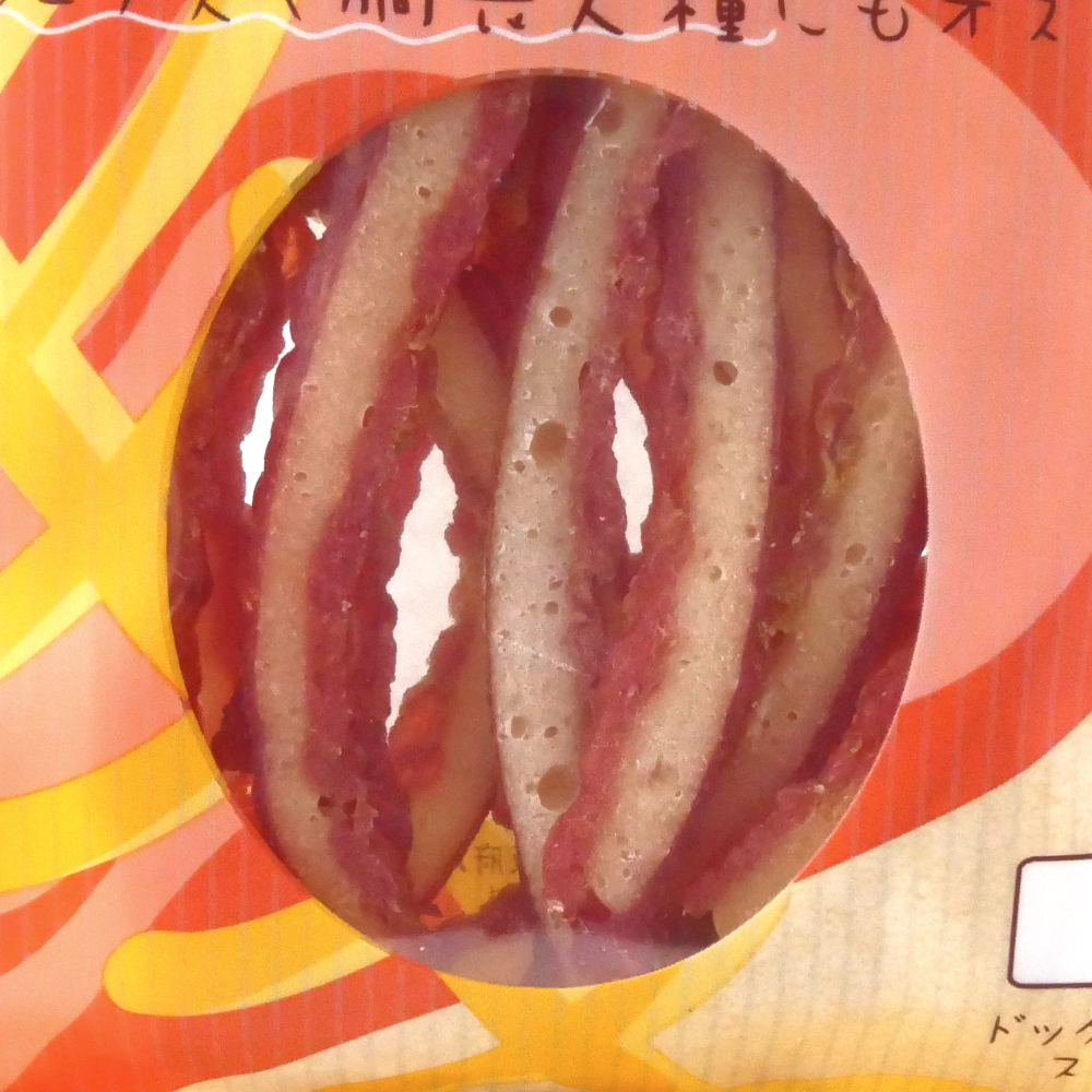 | 原材料 | 砂肝、鶏肉(もも肉、胸肉、ささみ)、でん粉類、小麦粉、魚軟骨、ソルビトール、グリセリン、プロピレングリコール、食塩、リン酸塩(Na)、酸化防止剤(ビタミンE)、発色剤(亜硝酸Na) | ||||||||||||