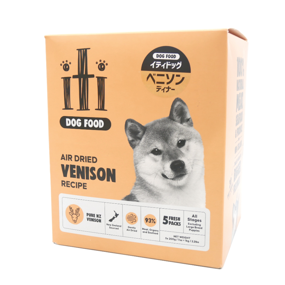 | 原材料 | ベニソン、ベニソン内臓、ココナッツグリセリン、亜麻仁、緑イ貝、シーソルト、ベニソン骨、ミックストコフェロール(酸化防止剤)、アミノ酸類(タウリン)、ビタミン類(塩化コリン、E、B1、A、B3、B5、B2、B6、D、ビオチン、B12、葉酸)、ミネラル類(リン酸二カリウム、炭酸カルシウム、鉄、亜鉛、セレン、銅、マンガン、ヨウ素) | ||||||||||||||