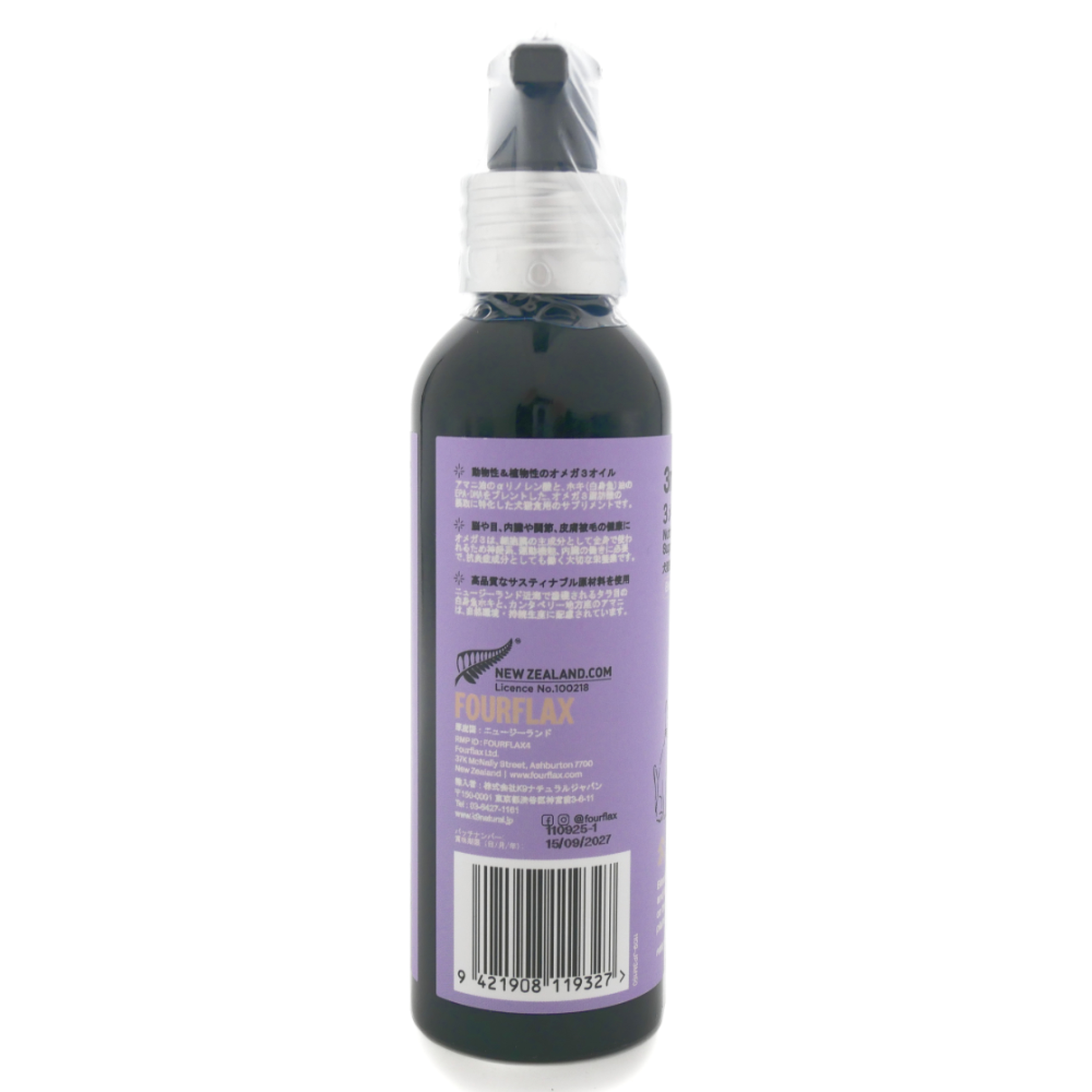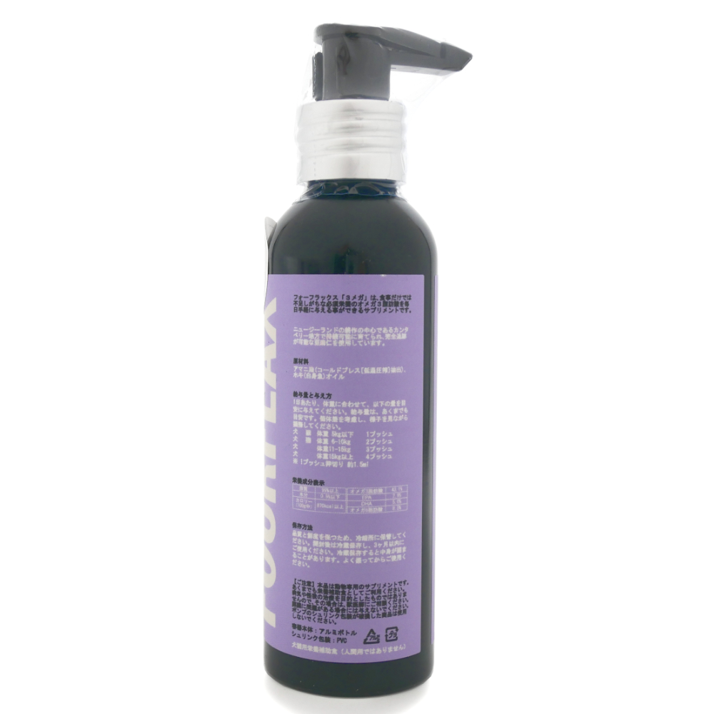 ●FOURFLAX 3メガは、動物性と植物性の両方から、不足しがちな3つのオメガ3脂肪酸(EPA、DHA、ALA)を補給できるサプリメントオイルです。