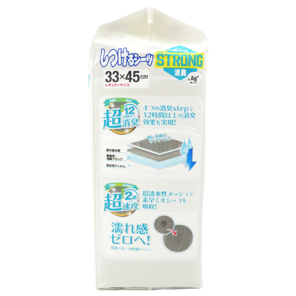 | 素材 | PE、炭紙、粉砕パルプ、高吸水性ポリマー 消臭材、抗菌材 |