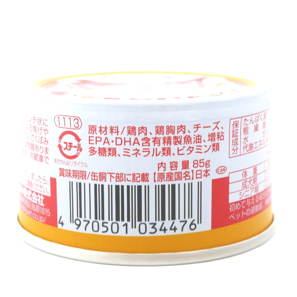| 原材料 | 鶏肉、鶏胸肉、チーズ、EPA・DHA含有精製魚油、増粘多糖類、ミネラル類、ビタミン類 | ||||||||||||||