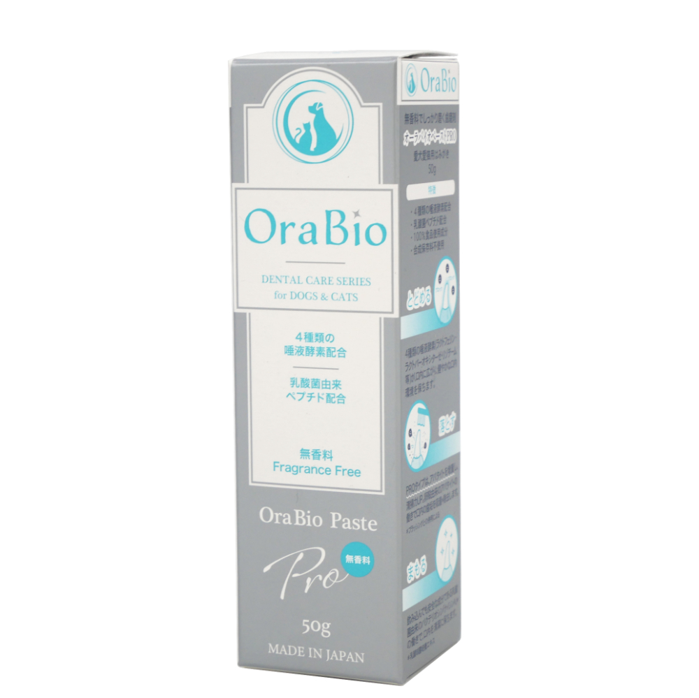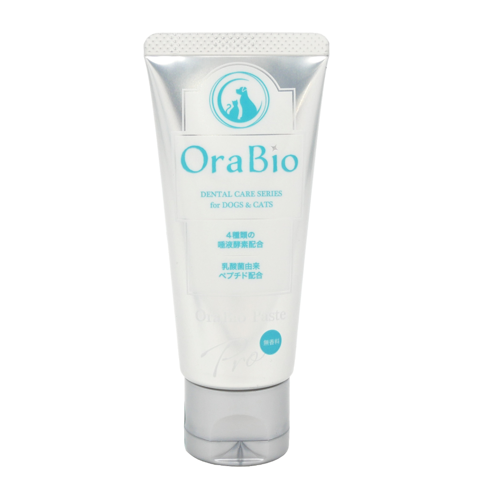 ●犬猫用歯磨き剤「オーラバイオペースト」は、ラクトフェリンやリゾチームなど4種の唾液酵素を配合し、清掃剤には卵殻由来のアパタイトを配合しました。