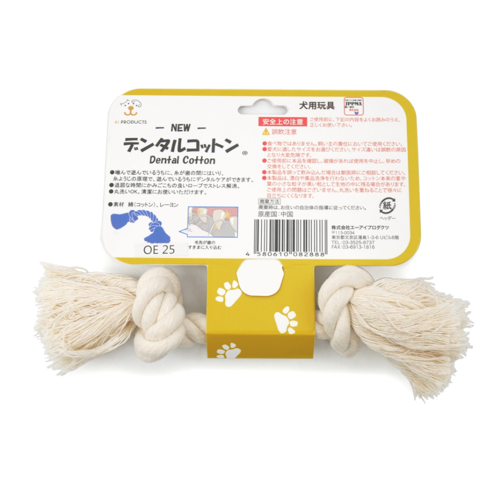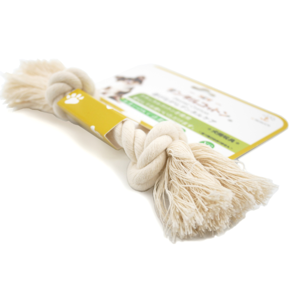 ●原糸はコットン100%にこだわり製造。愛犬が直接噛むため、ケミカルな素材ではなく天然素材であるコットン100%を採用。