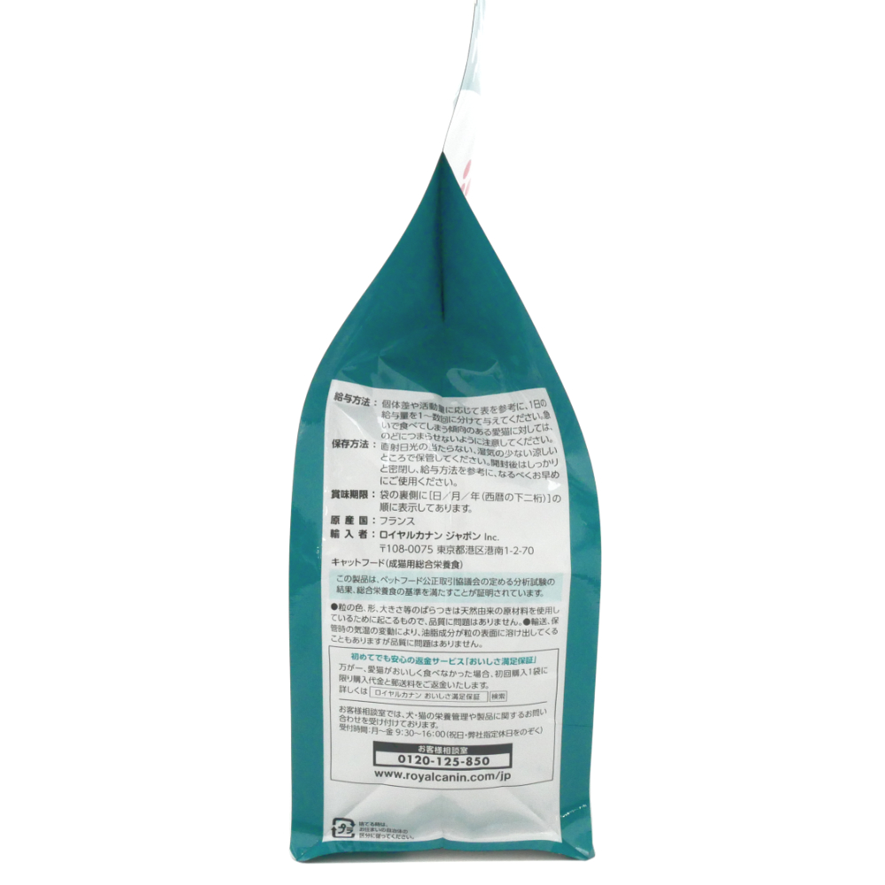 | 原材料 | 小麦、超高消化性小麦タンパク(消化率90%以上)、肉類(鶏、七面鳥、ダック)、コーン、動物性油脂、加水分解タンパク(鶏、七面鳥、魚)、ビートパルプ、コーングルテン、大豆油(オメガ6系不飽和脂肪酸源)、酵母および酵母エキス、植物性繊維、藻類油(オメガ3系不飽和脂肪酸〔EPA+DHA〕源)、サイリウム、トマト(リコピン源)、フラクトオリゴ糖、加水分解酵母(マンナンオリゴ糖源)、ルリチシャ油、グルコサミン、マリーゴールド(ルテイン源)、魚油(オメガ3系不飽和脂肪酸〔EPA+DHA〕源)、加水分解軟骨(コンドロイチン硫酸源)、アミノ酸類(タウリン、L-トリプトファン、L-カルニチン)、β-カロテン、ミネラル類 (Ca、Cl、K、Na、Zn、Mn、Fe、Cu、Se、I)、ビタミン類 (コリン、E、C、B12、ナイアシン、ビオチン、B2、パントテン酸カルシウム、B6、A、B1、葉酸、D3)、酸化防止剤(ミックストコフェロール、ローズマリーエキス) | ||||||||||||||