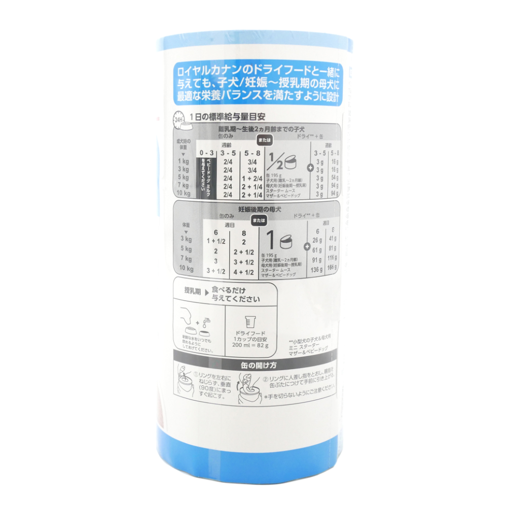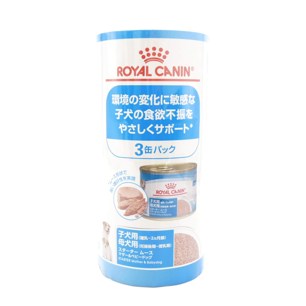 ●ロイヤルカナンのドライフードと一緒に与えても、子犬/妊娠・授乳期の母犬に最適な栄養バランスを満たすように設計されたムースタイプのウエットフードです。