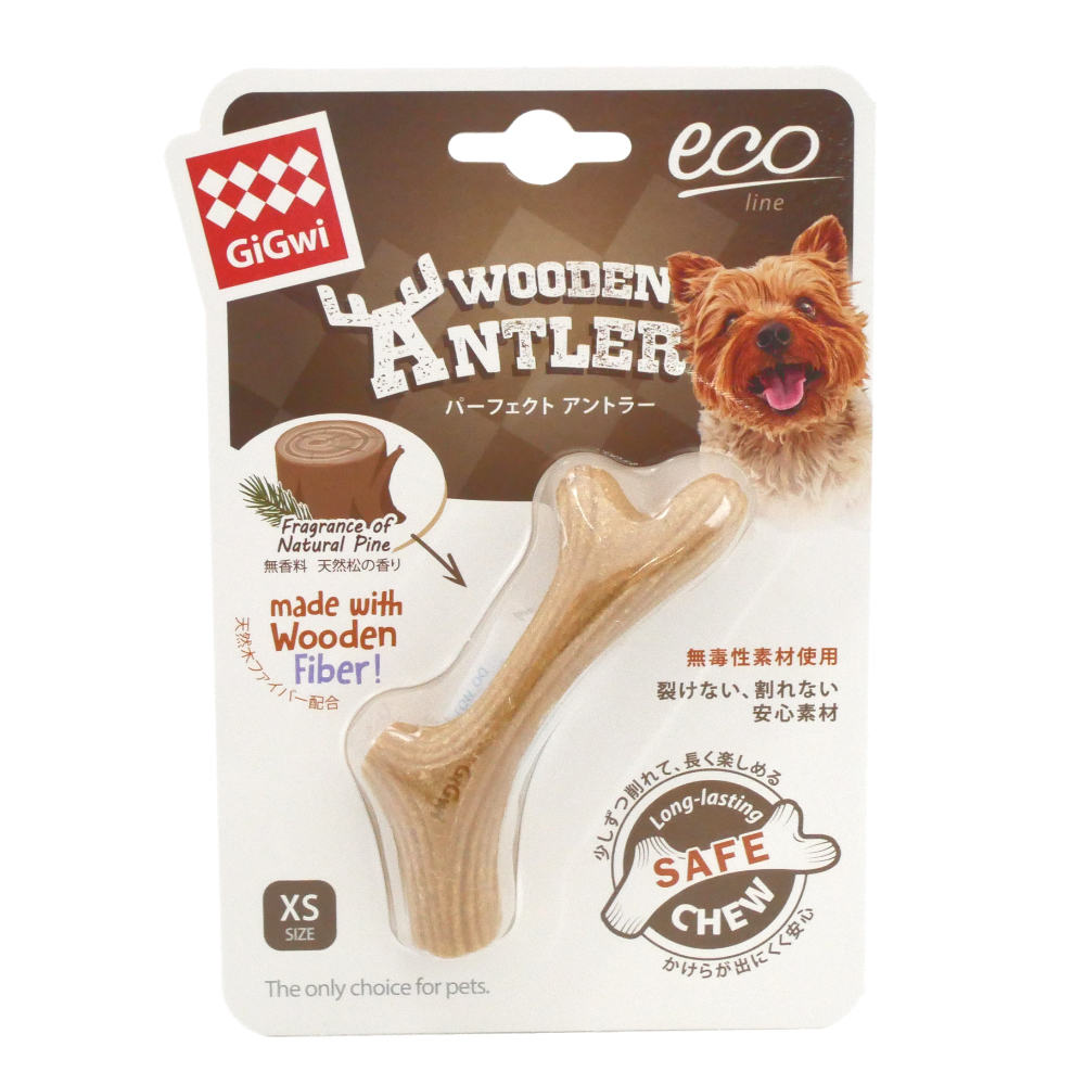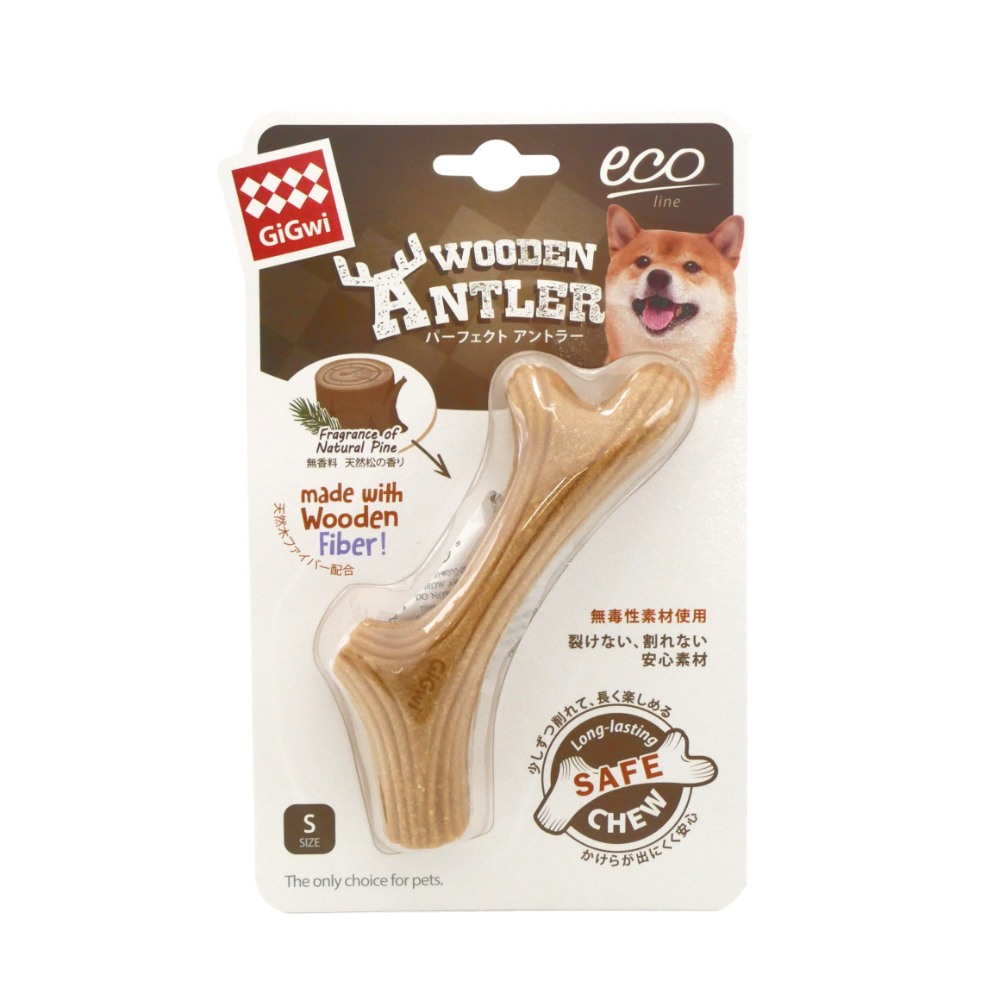 細かい天然木ファイバーを無毒性樹脂で固めた、噛むことが大好きな愛犬のためのトーイです。