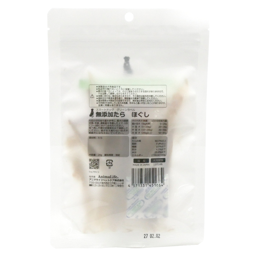 スマートドッグ グリーンラベル 無添加タラほぐし