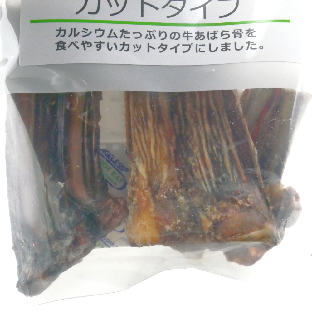 ●カルシウムたっぷりの牛あばら骨を食べやすいカットタイプにしました。