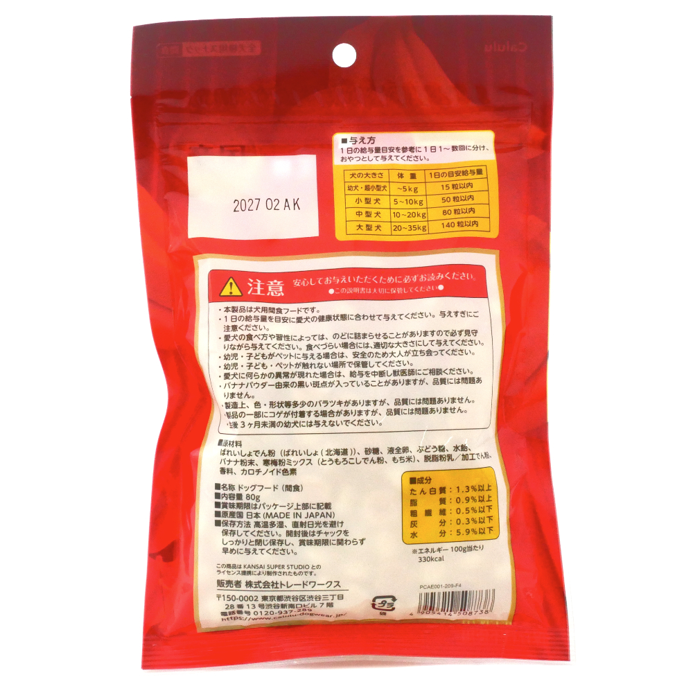 ●保存料、小麦粉は一切使用せず、国内の委託工場で製造し、ヒューマングレードの品質に仕上げました。