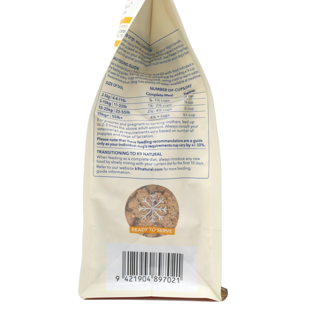 | 原材料 | 鶏肉(人間食用の家禽から生産される),グリーントライプ(子羊),卵,昆布,フラックスシードフレーク,キャベツ,ブロッコリー,チャード(葉野菜),にんじん,カリフラワー,乾燥昆布,炭酸カルシウム,りんご,洋なし,ニュージーランド緑イ貝,ベータカロチン,ビタミンD,ビタミンE,プロティネイト亜鉛,プロティネイト鉄,プロティネイト銅,プロティネイトマンガン,ビタミンB1,葉酸,セレン酵母 | ||||||||||||||||